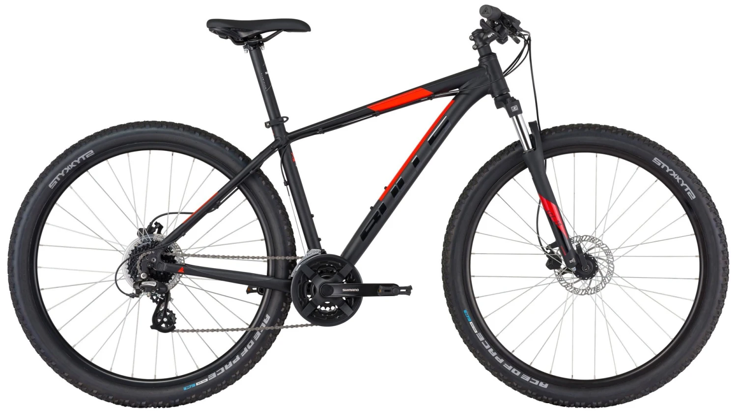 7005 Alu Rahmen, Suntour XCE-28 Federgabel einstellbar, 24-Gang Altus Schaltwerk, Altus Schalthebel, Tourney Umwerfer und Kurbeln, Formula Naben, Tektro HD-M275 hydr. Disc-Bremsen, STYX DDM-2 Disc Felgen, Formula Naben, STYX Lenker, Vorbau, Sattelstütze und Reifen (27½x2,25 Zoll)