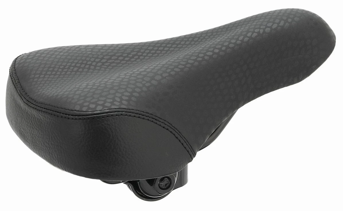 Bequemer Kindersattel mit strapazierfähigem Bezug und ergonomisch ausgeformter Oberfläche. Komfort schon für die Kleinen. Ohne Kloben.