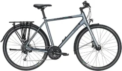 Big-Size Alurahmen mit Federgabel, Shimano Tourney Kettenschaltung mit Revoshift Schalthebeln (Drehgriffe), Suntour Alu Kurbeln, Alu V-Bremsen vorne und hinten, Alu-Hohlkammerfelgen, MTB-Lenker, Bar-Ends, Kettenschutz, Straßenausstattung mit Shimano Nabendynamo, Standrücklicht und 30-Lux LED-Lampe