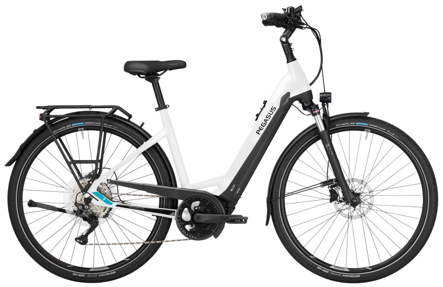 Hydroforming 7005 Alu-Rahmen mit Tapered Steuerrohr, NCX-D-HLO Federgabel, Deore 10-Gang Schaltwerk, Schalthebel und Zahnkranz (11-46), MT-201 Scheibenbremsen mit 180mm Bremsscheiben, Taurus-2000 Hohlkammerfelgen, Bosch Performance-CX Mittelmotor 250W/85Nm, integrierter 400Wh (Serie), 500Wh oder 625Wh (Aufpreis) Akku 36V Li-Ion, Schwalbe Marathon Plus Reifen 50-622, Fuxon FS-50 LED-Lampe mit 50 Lux, 12 Volt Lichtanlage, Comodoro Sattel, verstellbarer Vorbau.