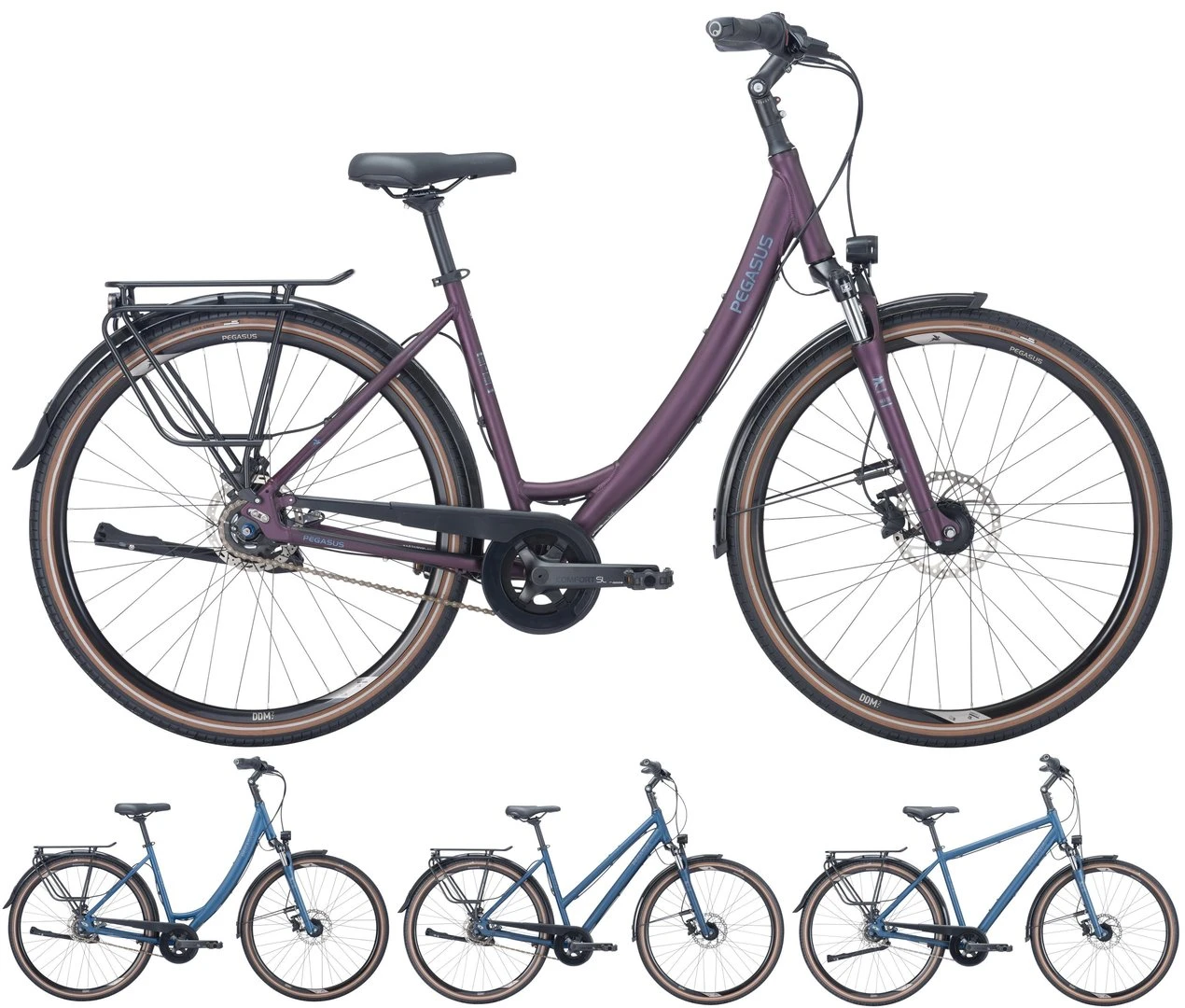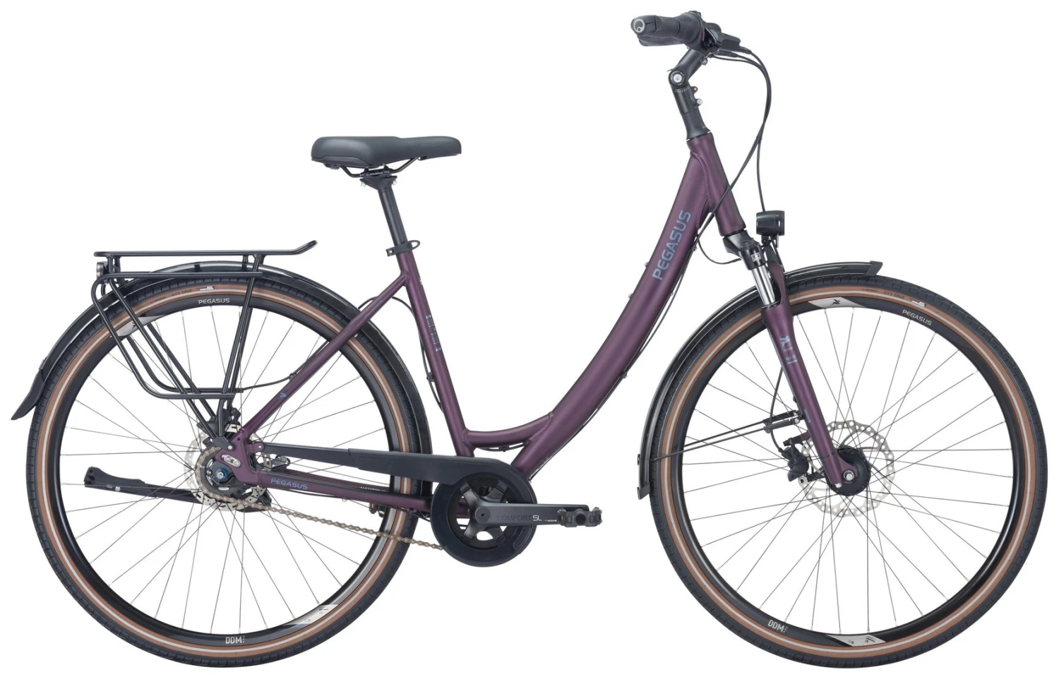 6061 Alu-Rahmen, Suntour NEX-DS einstellbare Federgabel, Nexus 8-Gang Nabenschaltung mit Rücktritt und Revoshift Schalthebel, Tektro HD-T390 Scheibenbremsen mit 2,3mm Scheiben (160/180mm), DDM-2 Hohlkammer-Felgen, VeeTire City Cruz Reifen 44-622, verstellbarer Vorbau mit 31,8mm Lenker, Ergon-Griffe, Nabendynamo, 50 Lux LED-Lampe, Standrücklicht, einstellbarer Hinterbauständer, Horn Catena Kettenschutz, Gummikralle Pedale