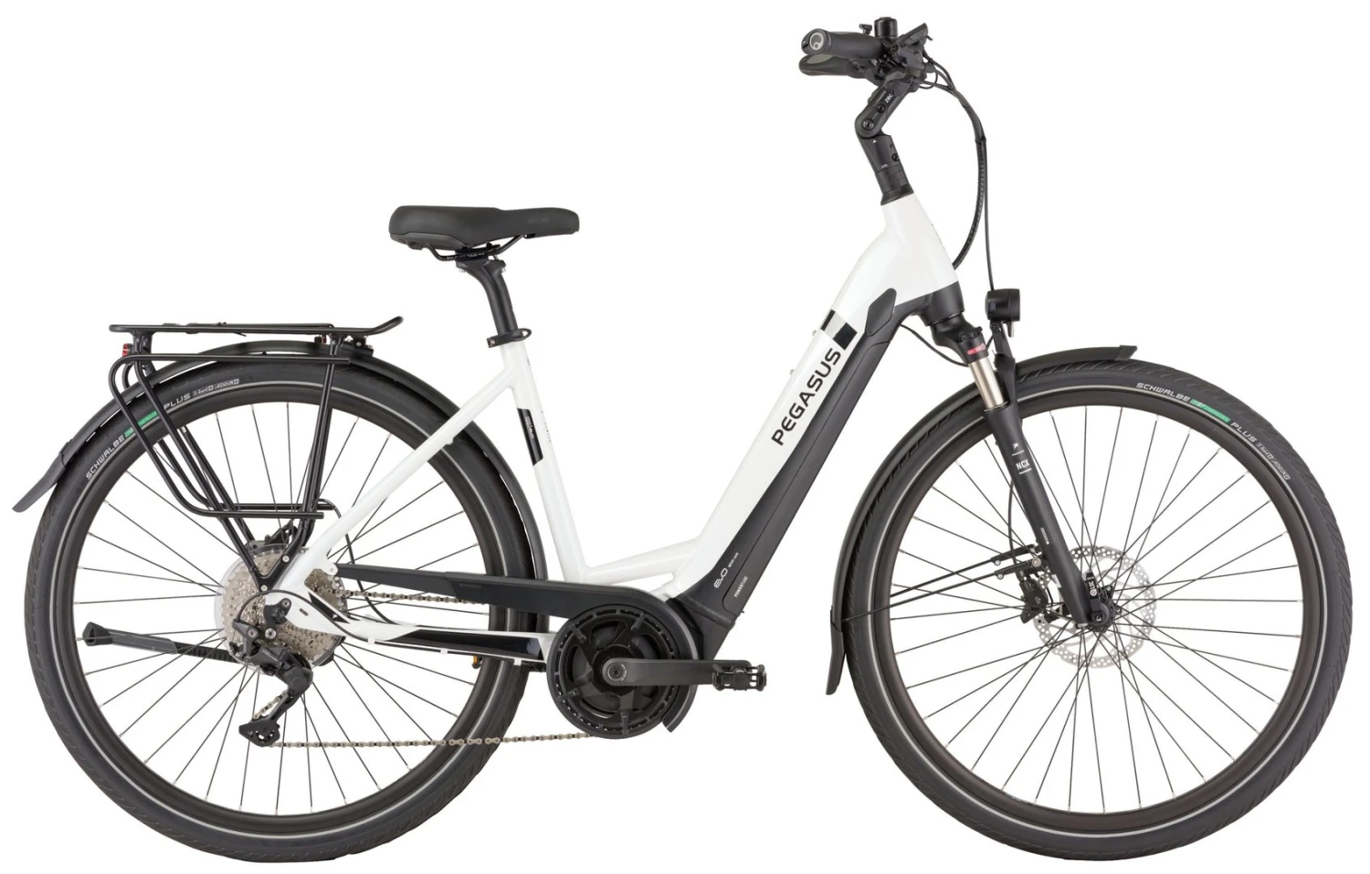 Hydroforming 7005 Alu-Rahmen mit Tapered Steuerrohr, NDX-D-Air-HLO Federgabel, Deore 10-Gang Schaltwerk, Schalthebel und Zahnkranz (11-42), MT-410 Scheibenbremsen mit 180mm Bremsscheiben, Andra-25 Hohlkammerfelgen, Bosch Performanceline Mittelmotor 250W/65Nm, integrierter 400Wh (Serie), 500Wh oder 625Wh Akku (Aufpreis) Akku, Schwalbe Energizer Plus Reifen (50-622), Fuxon FS-100 LED-Lampe mit 100 Lux, 12 Volt Lichtanlage, Zecure Sattel, verstellbarer UP-Vorbau, Lenker und Sattelstütze. Zulässiges Gesamtgewicht: 180kg